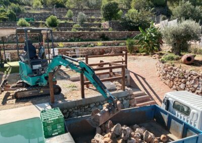 Retirada y gestión de escombros, cumpliendo con la normativa vigente para el correcto reciclaje de residuos de construcción.